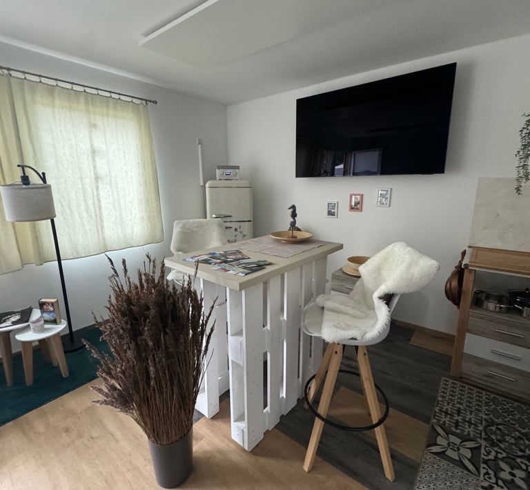Diese Wohnung ist für 2 Personen konzipiert. Sie bietet ein einmaliges Ambiente, sowie eine große, sonnige Terrasse. Die Wohnung besitzt ein Schlafzimmer, ein großes ebenerdiges Duschbad, einen Vorraum mit Waschgelegenheit. Die Küche ist klein, aber fein. Ein Induktionsherd mit Backofen, einen Geschirrspüler und einen großen, geräumigen Kühlschrank mit Gefrierfach runden die Küche ab. Kinoabende am Abend sind kein Wunsch mehr, sondern ein Spaß. Hierfür sorgt der große Smart TV mit Wlan.